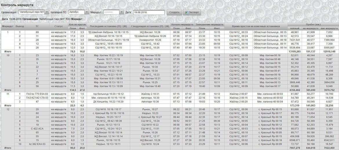 Hace unos años nuestro socio de Kazajistán, la empresa KazIntersoft, encontró la solución y, usando las posibilidades del módulo SDK para recibir los datos de Wialon, ha elaborado el sistema de centralización del control del transporte urbano BusReport.