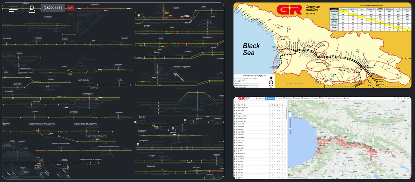 - La interfaz refleja el mapa de despacho tradicional y sigue completamente los estándares de Ferrocarriles Georgianos.