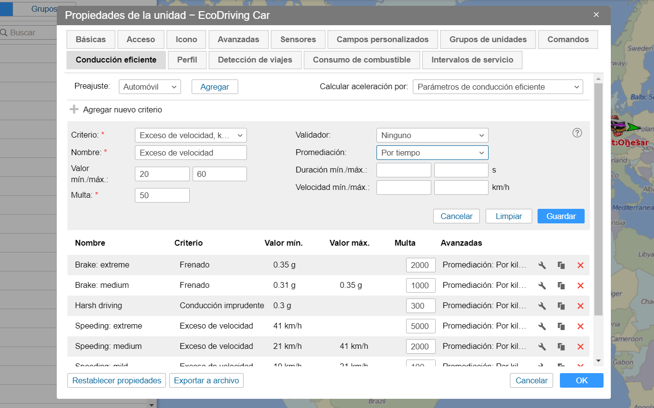 Wialon permite personalizar la puntuación de infracciones, asignando puntos de penalización y adaptando los criterios de evaluación a las necesidades de su cliente.