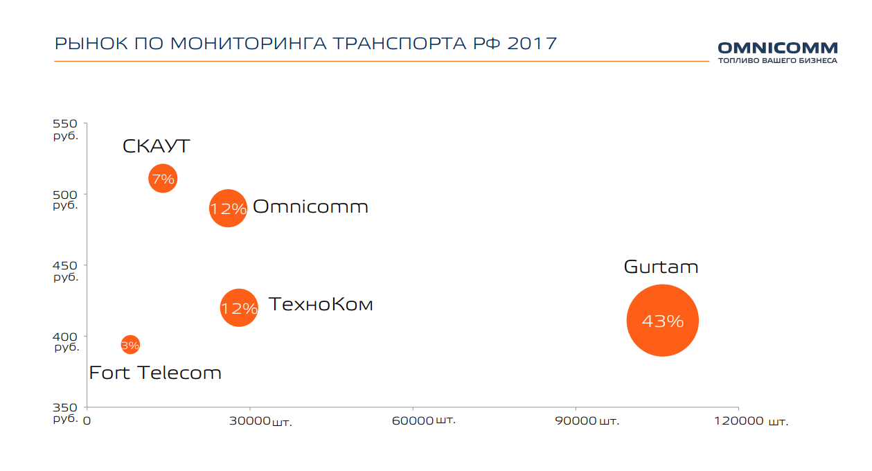По данным Omnicomm, общая доля Gurtam по количеству объектов на рынке мониторинга транспорта в России составляет 29%. Это 568 000 подключений из 1 950 000 объектов, которые были подключены за 2010-2017 годы. Подробности – в ежегодном исследовании рынка мониторинга транспорта в РФ от Omnicomm.