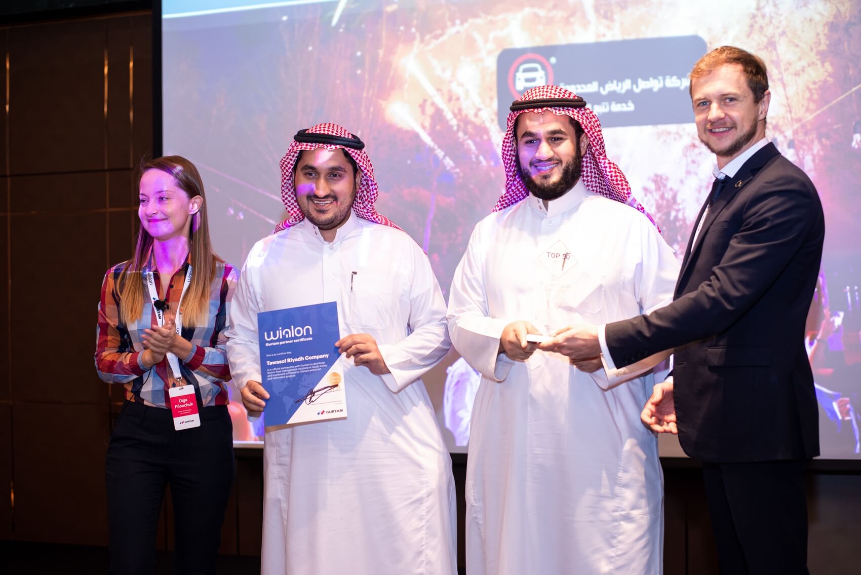 В начале конференции Ольга Филончук, директор по развитию бизнеса Gurtam, еще раз напомнила партнерам о TelematiX и рейтинге Wialon TOP 50 Global 2019, поздравив компанию Tawasol Riyadh из Саудовской Аравии. Tawasol вошла в десятку наиболее активно развивающихся партнеров Gurtam в 2019 году.