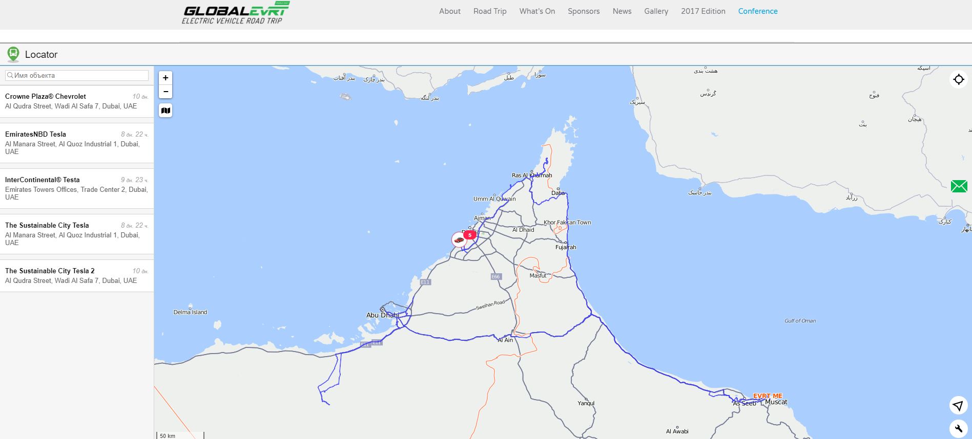 Пробег электрокаров проводился во второй раз, и в этом году был организован с целью развеять миф о том, что электрокары могут полноценно функционировать только в городских условиях. Маршруты всех участников можно было отслеживать в режиме реального времени, благодаря заботе компании Inbound, партнера Gurtam на Ближнем Востоке. Компания стала спонсором мероприятия. Для того, чтобы держать зрителей в курсе событий, где находились участники, компания Inbound использовала инструмент Locator от Gurtam.
